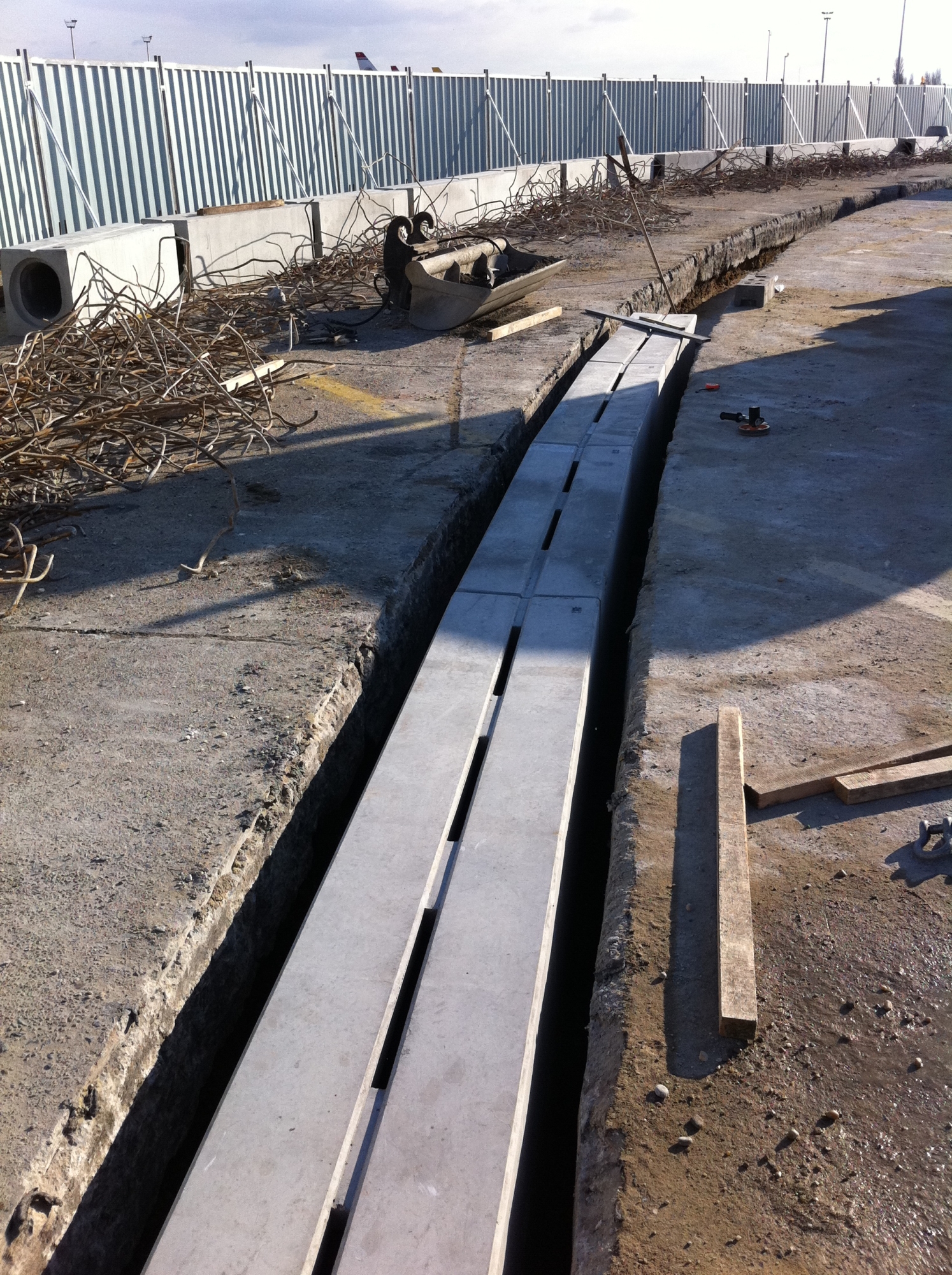 Due to the Budapest Airport’s environmentally conscious attitudes over the past few years, several improvements have been made in order to protect the natural environment around the airport. In the frame of this initiative, the stormwater drainage system was updated from an old channel system with cast iron grating to a new mono-body slot drain system. With the Pureco slot drain system we replaced and old channel system in the length of 232 meters. It was unique because we used only one outlet point at the and of the slot drain line. Started with Profile III (DN 300) and with the transition we finished with our new development Profile VI (DN 600). The new drainage system works properly with our ENVIA TRP treatment system.